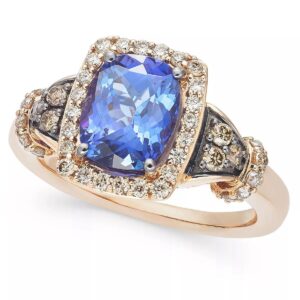 Blueberry Tanzanite(2 ct. t.w.), Nude Diamonds(1/3 ct. t.w.) & Chocolate Diamonds (1/8 ct. t.w.) Ring Set in 14k Rose Gold