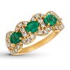 This ring is available in limited sizes. If you don’t see your size here, please visit a store to order your ring. This mesmerizing ring for her displays stunning Emeralds surrounded by sparkling Nude Diamonds. Fashioned in sweet 14K Honey Gold, the ring has a total diamond weight of 3/4 carat.